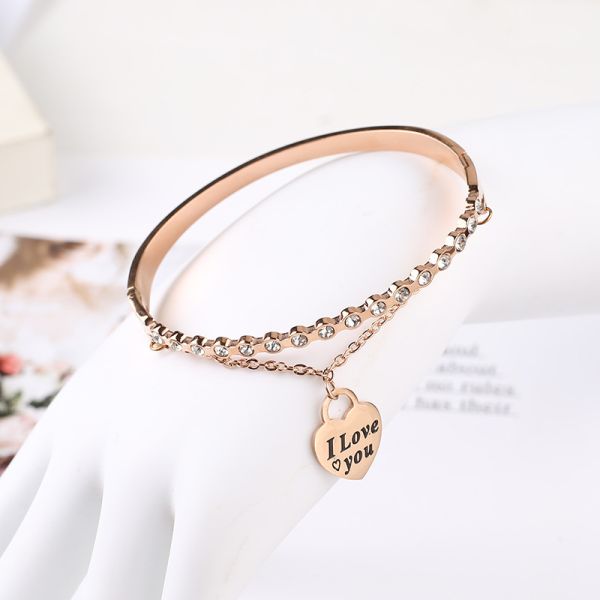 Stainless steel letter diamond 18K bracelet female love Roman tag bracelet titanium steel buckle logo words wholesale